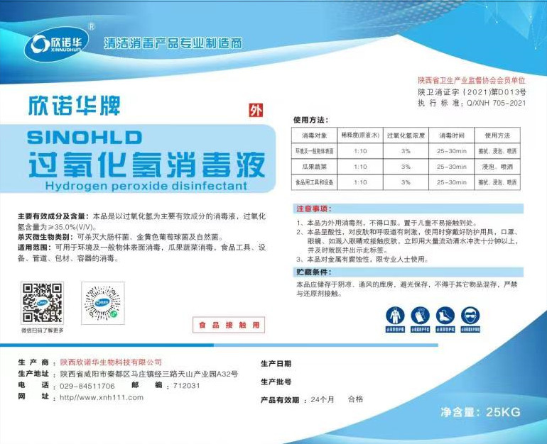產(chǎn)品名稱:過氧化氫消毒液 注冊商標(biāo):欣諾華牌