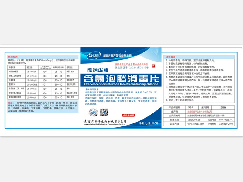 欣諾華牌含氯泡騰消毒片使用說明書